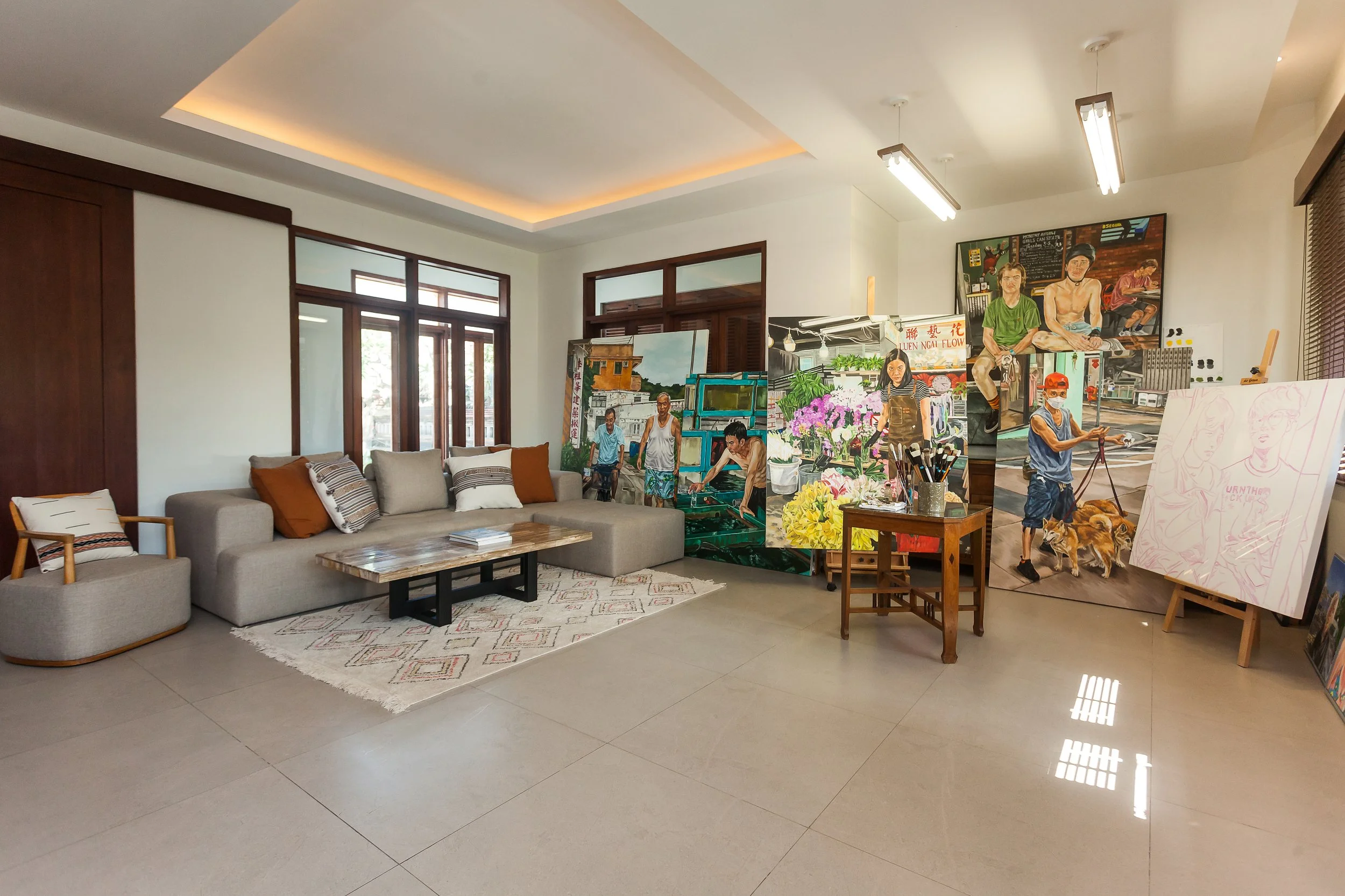 The artworks that you find throughout the villa were personally created by the owner in a bijou studio. Now repurposed as a lounge area, this cosy space also comes with a kitchen and pantry area, made for leisurely moments and afternoon tea sessions.